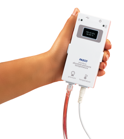 Zkoumejte zákony o plynech pomocí bezdrátového senzoru absolutního tlaku a teploty PASCO a jeho dodávané teplotní sondy s rychlou odezvou a stříkačky. Použijte tento senzor ke shromažďování důkazů pro výpočet práce vykonané plynem. Je také kompatibilní s aparaturou pro zákony ideálního plynu (TD-8596A), koulí absolutní nuly (TD-8595) nebo aparaturou pro tepelný motor (TD-8572) (není součástí balení) pro sledování změn tlaku se zvyšováním a snižováním teploty.